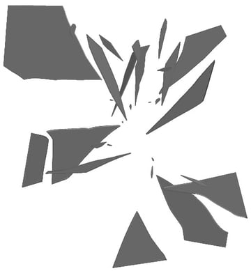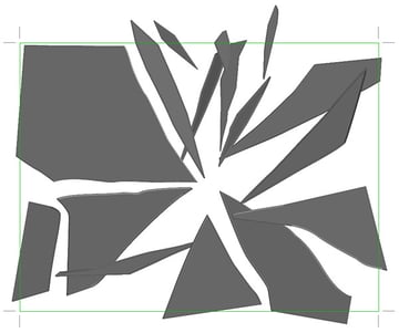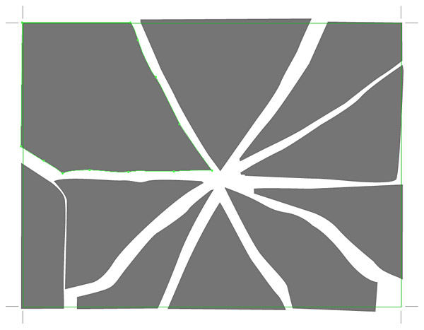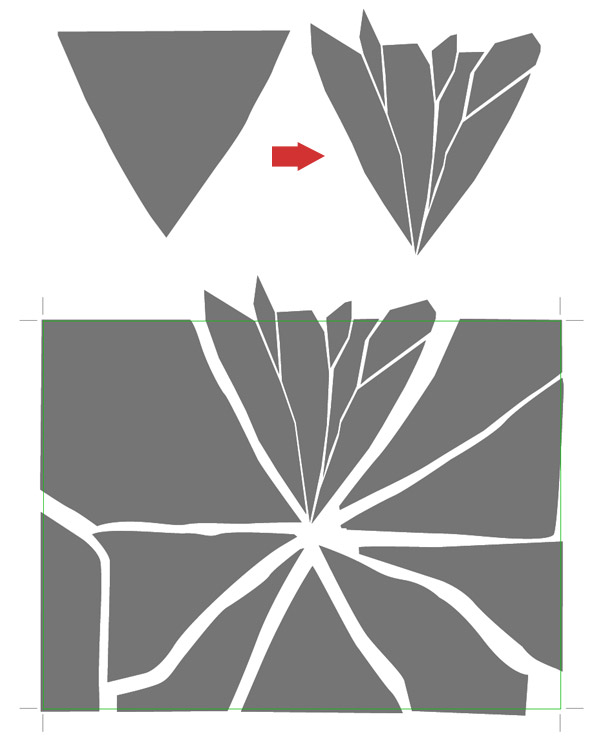 It's now time for the more laborious part: creating the broken glass. Go back to Illustrator and draw broken pieces of glass using the Pen Tool. Keep a rectangular shape as a reference. Fill them with this color: 757575. Make subtle dents that follow the basic shape, and remember that glass cracks are not perfectly straight.