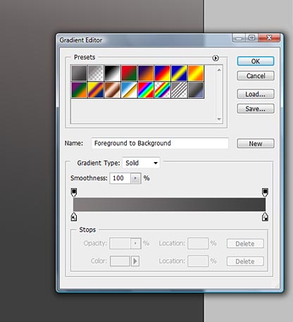 Start a new Photoshop Document using an A3 paper size at 300 dpi. To select the A3 setting, choose International Paper from the drop down menu. As soon as you begin grab the Gradient Tool (G) and create a linear gradient from top to bottom using a medium gray (#837e7e) and a dark one (#3f3f3f).