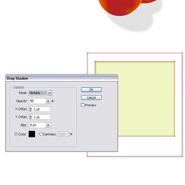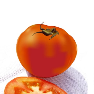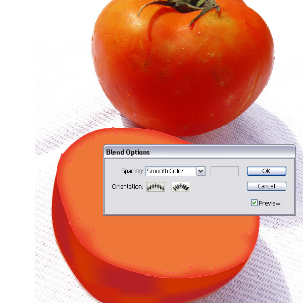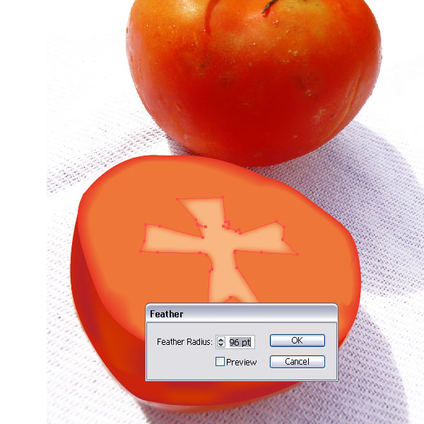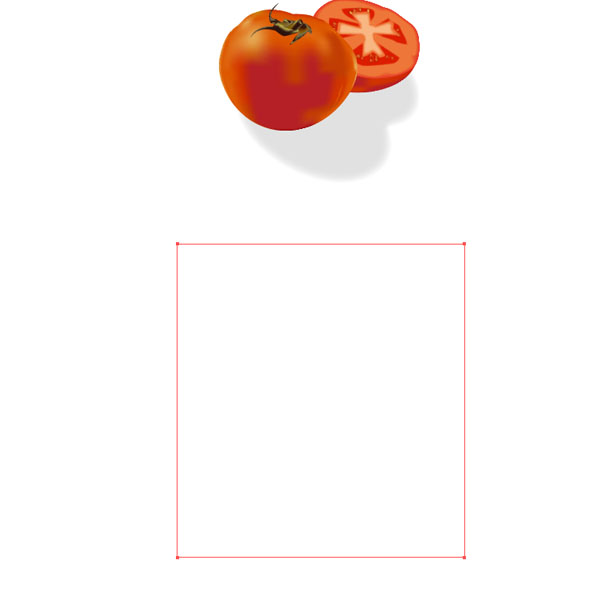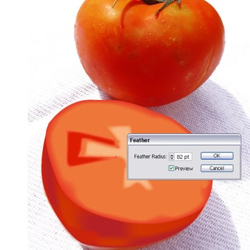 Place the cut tomato shape behind the other tomato. You might have to scale it down. Then create a similar shape like you see in the image below. This will be the shadow. Fill the shape with a light grey and apply a Feather Effect of 17pt. Place the shape underneath the tomatoes.
