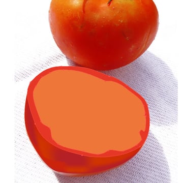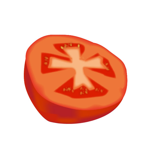 Create another shape that will resemble the fleshy parts of the tomato. Fill it with a much lighter red and apply a