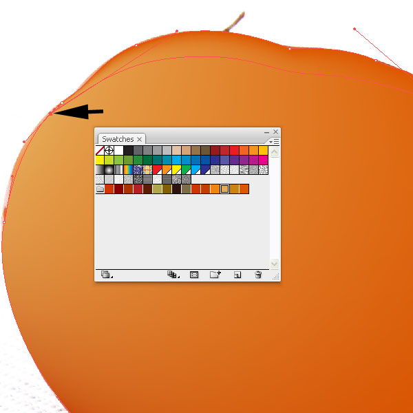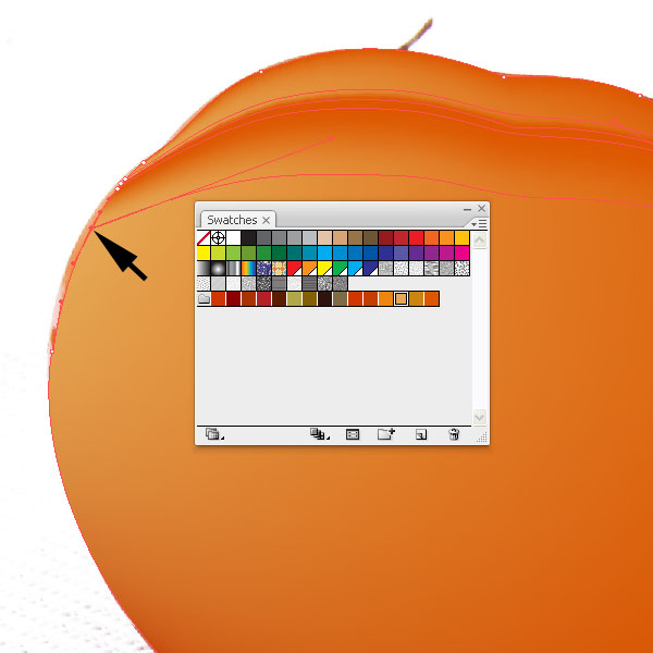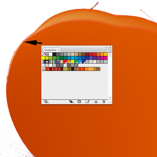 Place a mesh line (U) at the bottom of the tomato shape and fill the outer mesh point with a darker orange color.