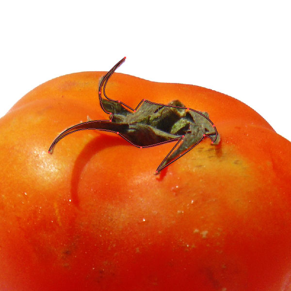 Start drawing a shape around the tomato with the Pen Tool (P).