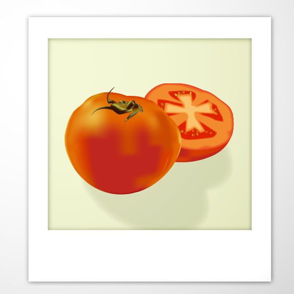 Place the Polaroid frame on top of the tomatoes. Since the inner shape was set to Overlay, it gives the tomatoes a slight punch. I place a light grey gradient background behind everything. Below you can see the final images. I hope you enjoyed this mesh tutorial.