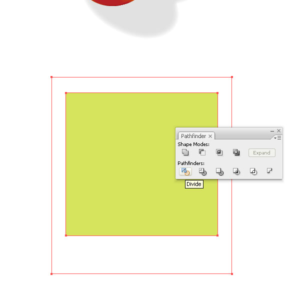 Create another rectangle and make it much smaller than the original one and fill it with a green color. Place it on top and center it vertically. Then select both shapes and click the Divide button in the Pathfinder Palette./p>