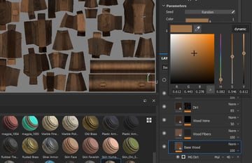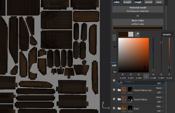 and drop Wood Rough material into layers. Change the colour to orange-brown.