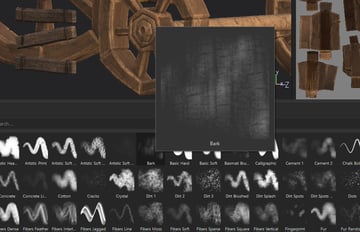 the Wood Rough layer and change to darker brown. Add black mask then use Sponge brush to paint some parts to become darker.