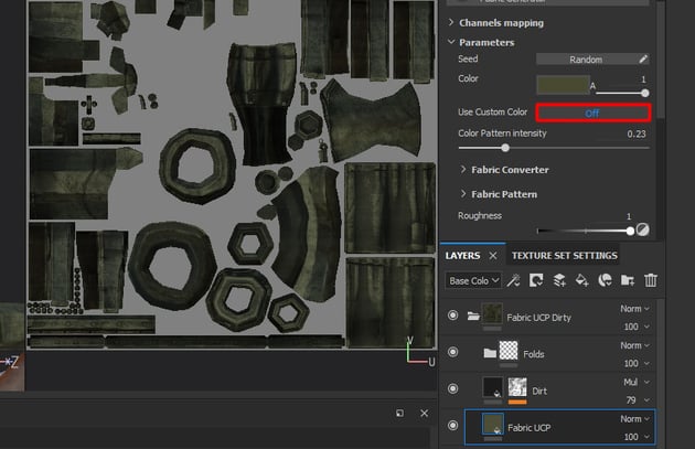 off Use Custom Color in Fabric UCP layer.