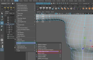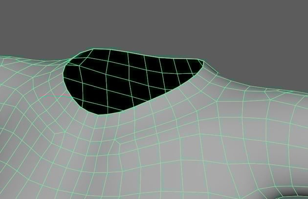 not to have triangle faces in character modelling, snap the vertices to the