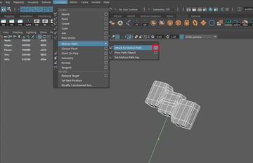 Select the zip mesh then Curve > Constrain > Motion Paths > Attach to Motion Path option box.