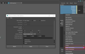 Repeat step 38-39. The rotation of the mesh is correct now. You can see the top of the curve has number 1, and the end has a number 120 (or the last number from the Time Slider at the bottom)