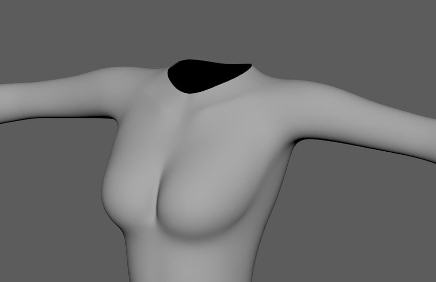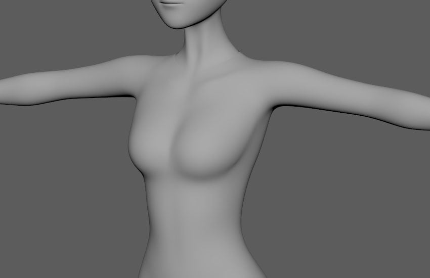 Adjust the shape of centre of the breasts as they won’t be so obvious when wearing clothes.