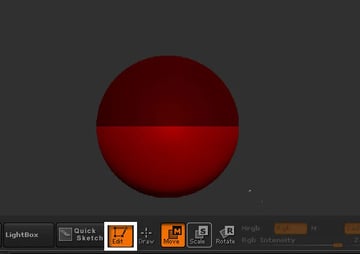Now select "Zsphere" from the "Tool" menu and draw a new Zsphere onto the canvas. Then click on the 'Edit' button. This zsphere is going to work as the pelvis for our character.