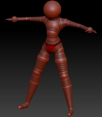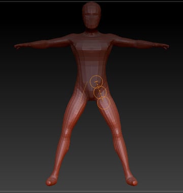 Now start working on the legs, add Zspheres and adjust them as shown below.