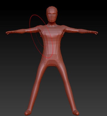 Add yet another Zsphere to the side of the chest, this will work as the base for the arm.