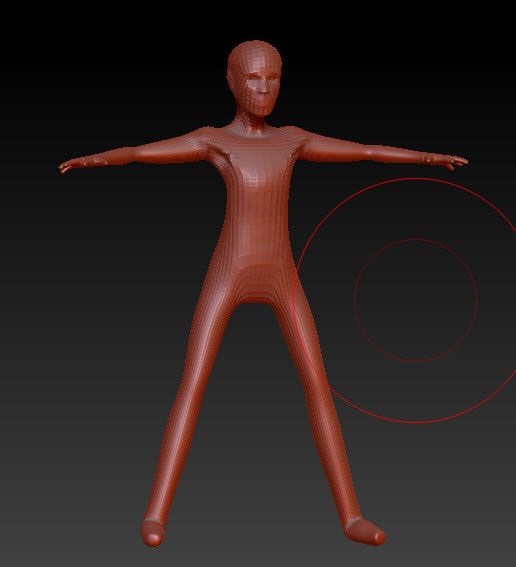 Press ‘Ctrl+Shift’ on the keyboard and click anywhere on the canvas. The whole model will become visible, increase the subdivisions level of the mesh by pressing ‘Ctrl+G’ on the keyboard. Then further define the shape of head using the Standard and Move brushes.