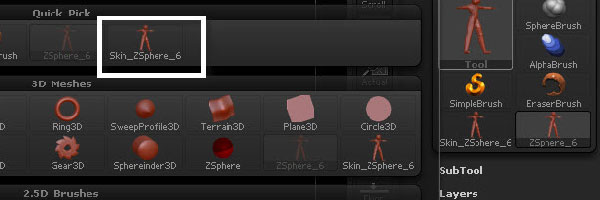 From the "Tools" menu, select the mesh we generated from the Zspheres.