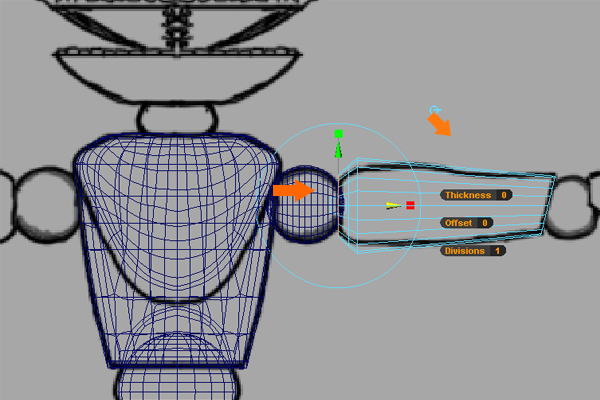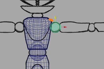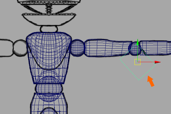 Here we need to add another sphere ball joint for the elbow rotation. So create another new Sphere, and place it at the elbow.