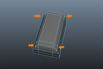 Insert several edge loops around the corner edges, as shown in the images below.