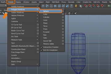 Next, go to the Create menu and select Sphere, from inside the Polygon Primitives submenu.