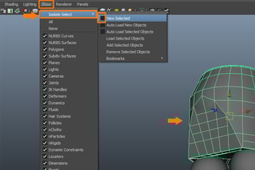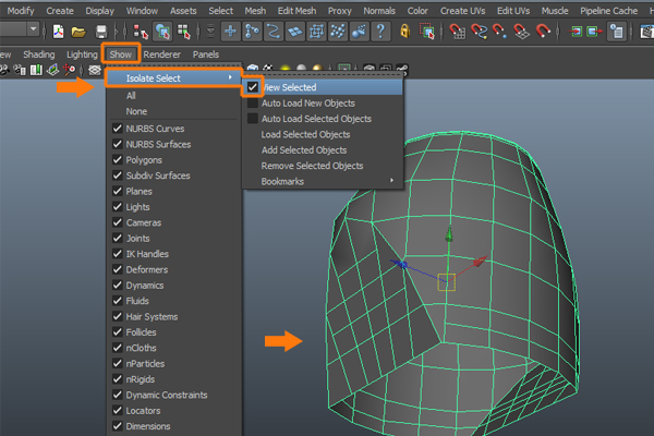 With the Abs selected, again go to the Show menu and uncheck the View Selected option, to unhide all the hidden objects.