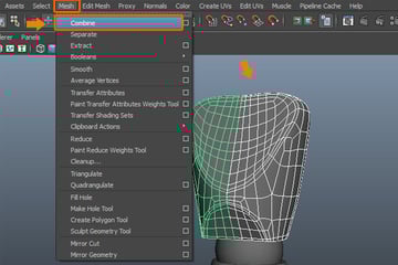 Now with the chest parts selected, go to the Mesh menu and select the Combine command, to attach the selected parts together.