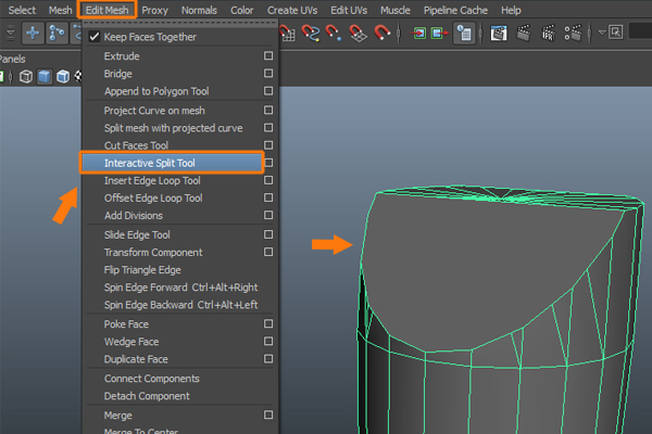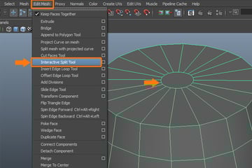 To add detail to the edge loops, go to the Edit Mesh menu again, and select the Interactive Split Tool.