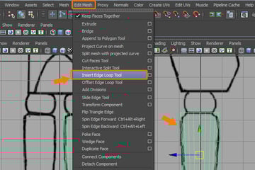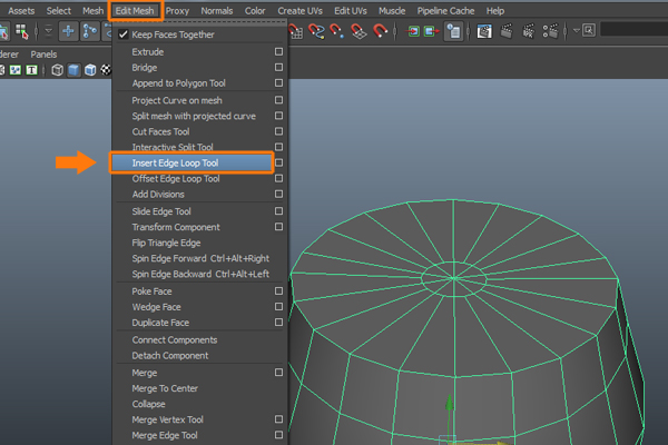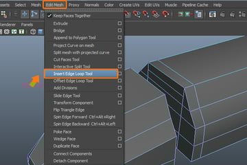 For more detail, we need to insert several edges. For that, go to the Edit Mesh menu and select the Insert Edge Loop Tool.