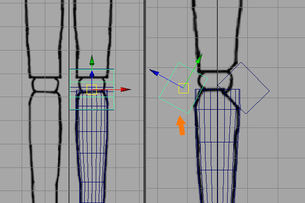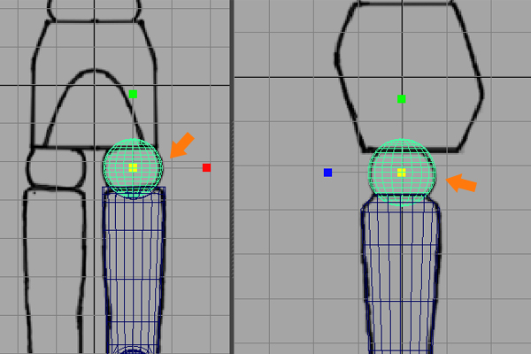 While in the Front and Side views, Scale and arrange the ball joint according to the background reference images.