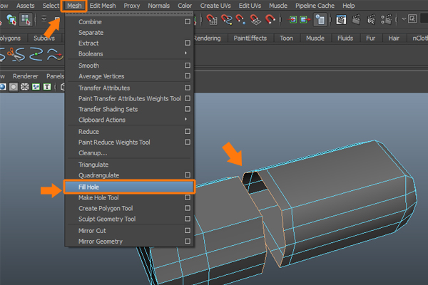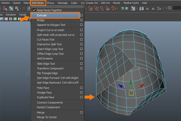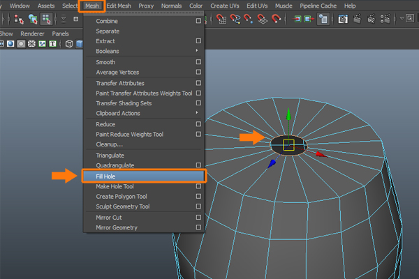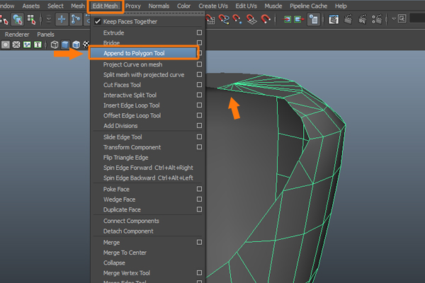 Now, to fill the empty area, go to the Edit Mesh menu and select the Append to Polygon Tool.