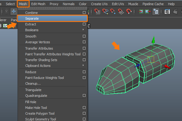 Now, it’s time to separate the toe and heel parts. So, with the foot mesh selected, go to the Mesh menu and click on the Separate command.