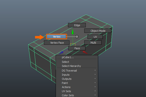Now with the cube selected, Right-click and select the Vertex option to jump into Vertex selection mode. Alternatively you can press the F9 key.