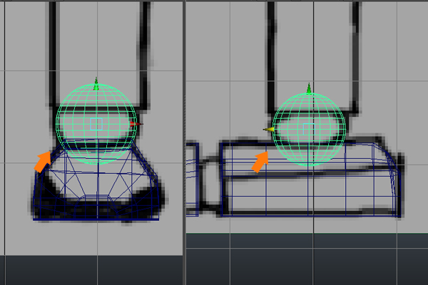 Also jump into the Front and Side views, and position the sphere according to the reference images.