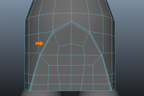 After adjusting the edges, we need to inserted several more edges as per the mesh flow.