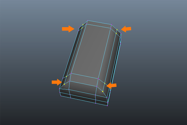And insert several edge loops around the corners, as shown in the images below.