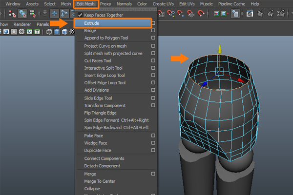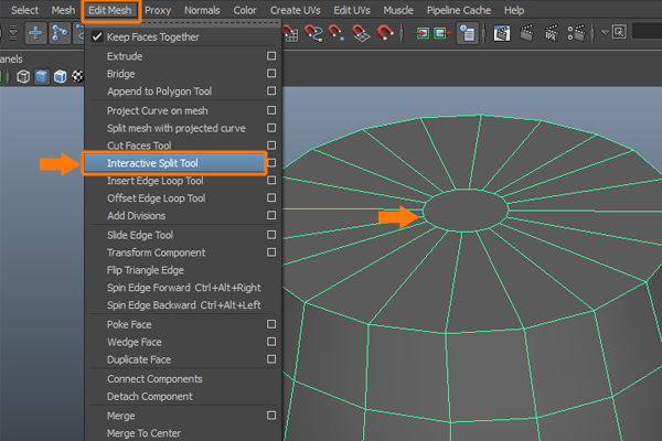 Now, we need to insert some edges to maintain the edge loops. So, go to Edit Mesh menu and select the Interactive Split Tool.