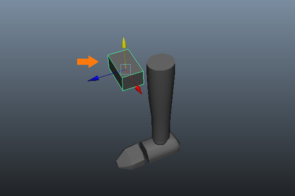 Rotate the cube and position it so it intersects the leg from the corner, as shown in the image.