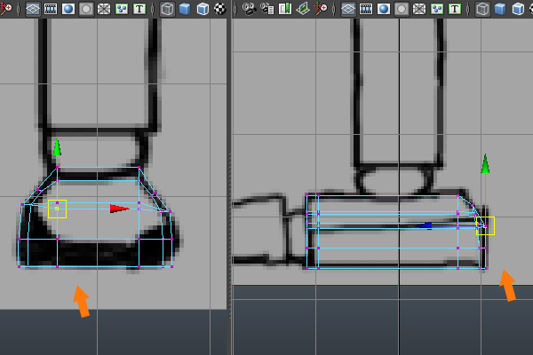 Also, jump into Vertex selection mode by pressing F9, and then adjust the vertices according to the reference images.