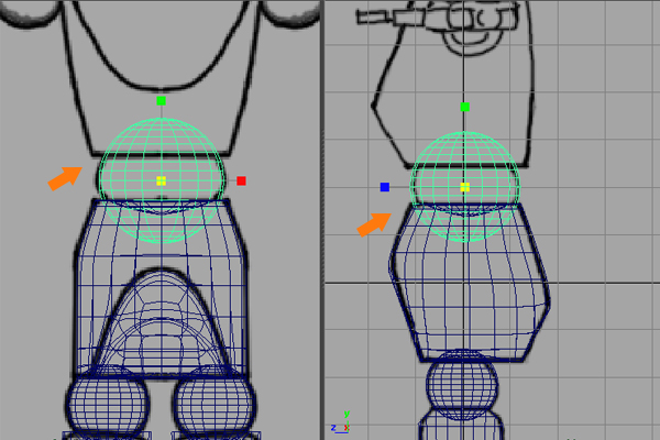 Now, let’s move towards creating the arms of the character. But first Create a new Sphere polygon mesh, and place it as the arm ball joint.