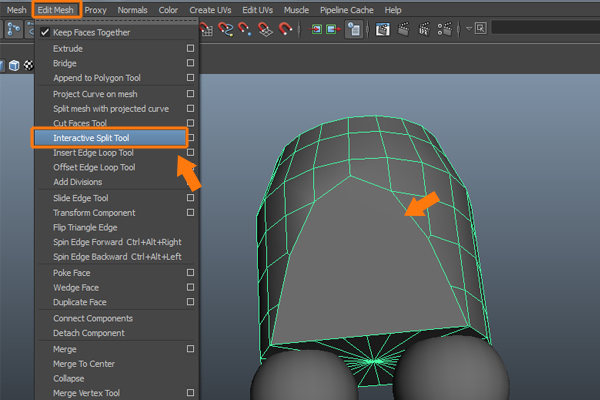 For better edge flow, we need to insert several edge loops. So, go to the Edit Mesh menu and select the Interactive Split Tool.