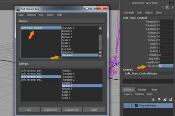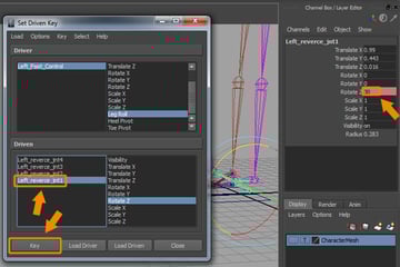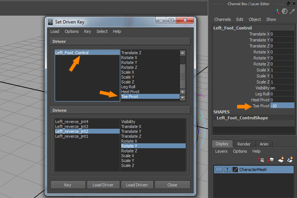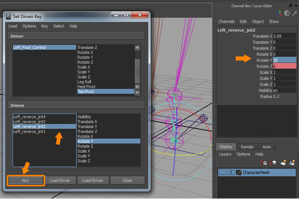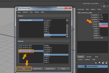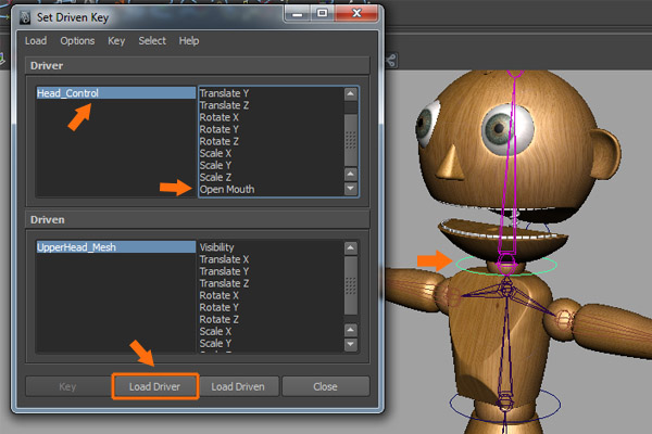 Select the Head_Control curve in the Set Driven Key window, and then click on the Load Driver button to load it in the Driver group.