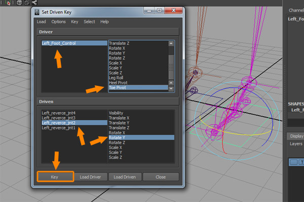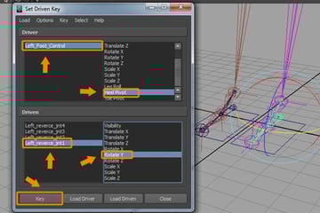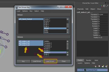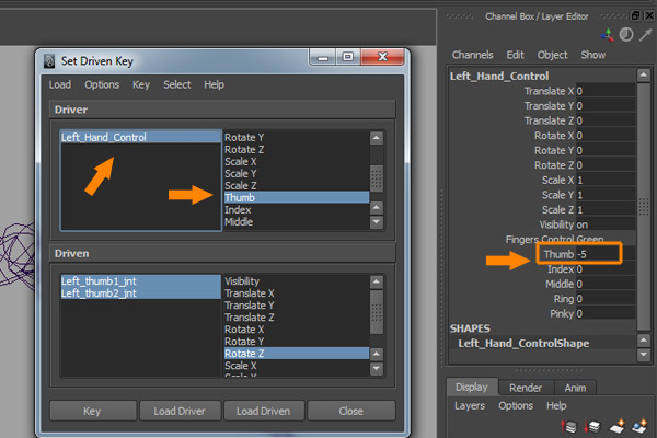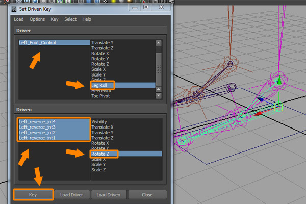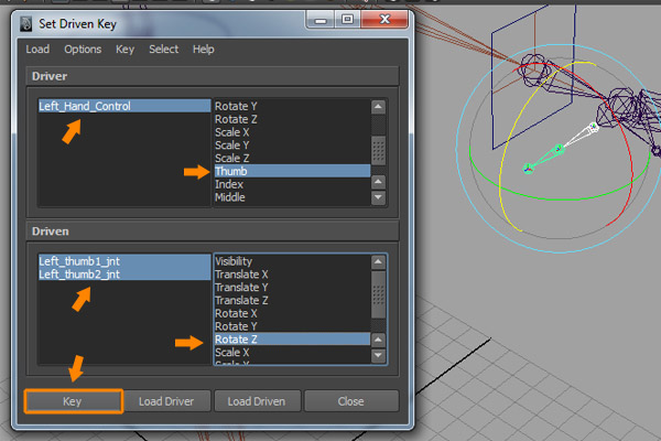 And then in the opened Set Driven Key window, click on the Load Driven button and this time select Rotate Z also.