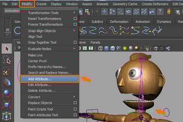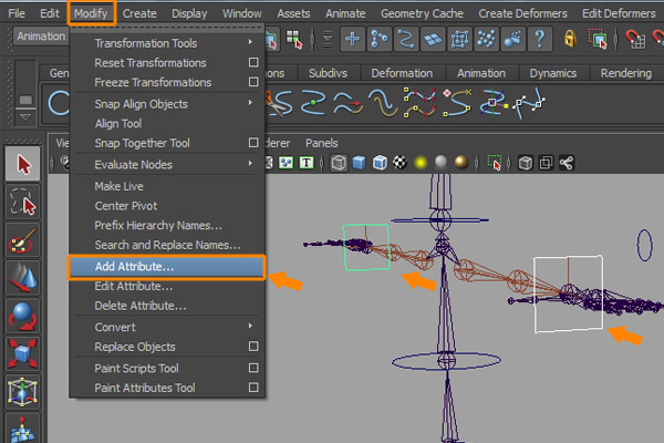 Now, we will make a costume attribute for the head control. So with the Head_Control selected, go to the Modify menu and select Add Attribute.