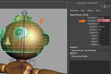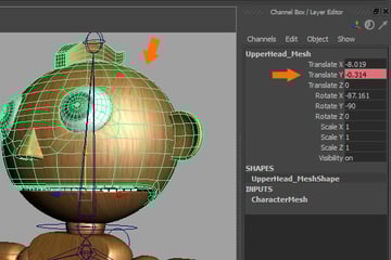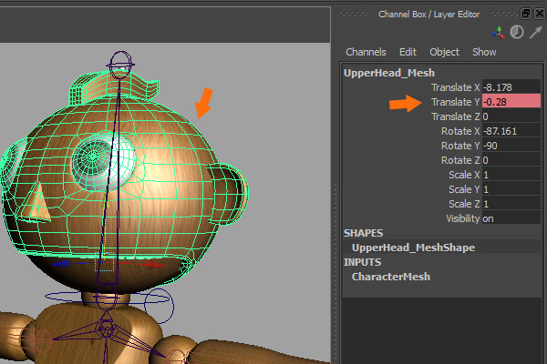 And with the UpperHead_Mesh selected, set the Translate value to something like -0.314.