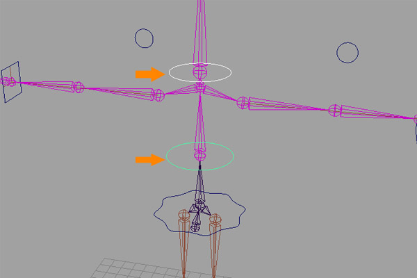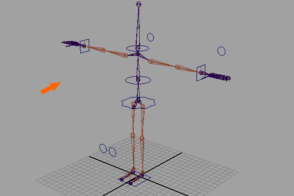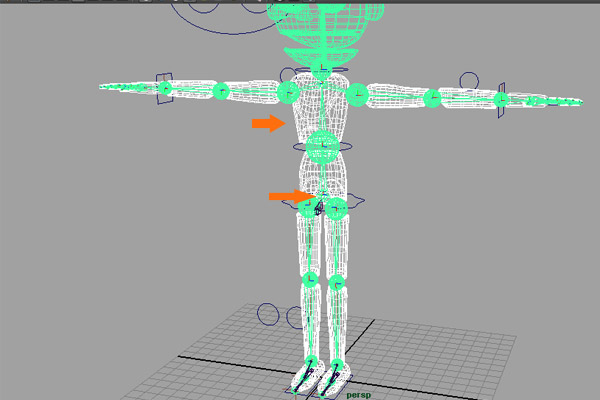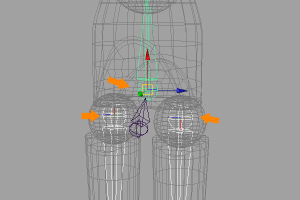 In this way we have parented all the joint balls with the character’s skeleton joints. You can check the connectivity anytime by moving the hip control here and there.