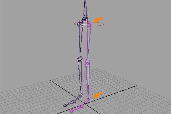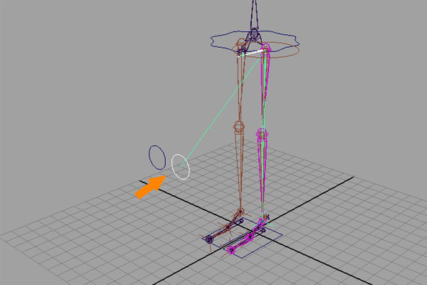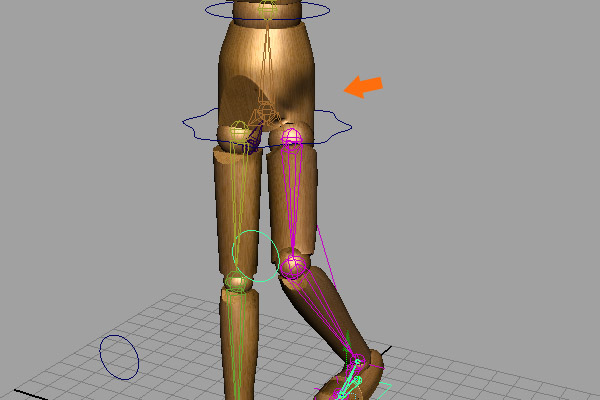 Now to test the links. Lets move the left foot control and the hip control one by one. You can see the character’s entire left joint ball meshes are carried with the skeleton.