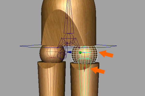 Next select the left knee ball mesh and then select the Left_knee_jnt joint, and press P to parant it also.