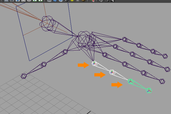 In the perspective view, you will see all the fingers joints are placed on the grid.