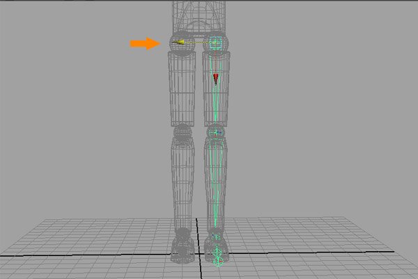 Now we come to the character’s pelvis area. First select the Left_thigh_jnt and the Right_thigh_jnt together, and then select the Hip_jnt and press the P key to parent them.