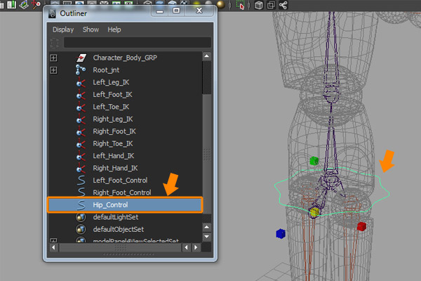 Now rename the star shape curve as "Hip_Control" inside the Outliner window.