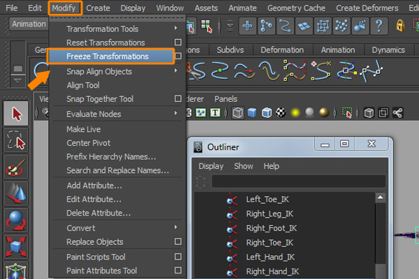 Now rename all the joints as ("Left_thigh_jnt", "Left_knee_jnt", "Left_ankle_jnt", "Left_foot_jnt" and "Left_toe_jnt") inside the Outliner window.